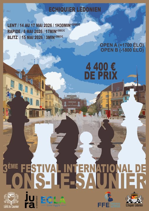 L'Échiquier Lédonien a l'honneur d'accueillir, le 8 mai et du 14 au 17 mai 2026, la nouvelle édition de son Festival International d'Échecs. Cet événement majeur réunit cinq tournois homologués – deux classiques, deux rapides et un blitz – et s'impose comme un rendez-vous incontournable du calendrier échiquéen.