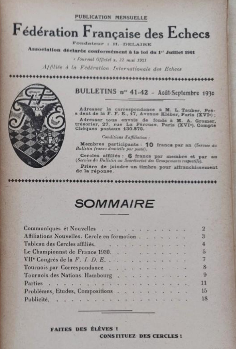 DT : J'ai toujours aimé regarder les parties des anciens maitres. Je me suis intéressé un peu plus au début des années 2000 en consultant le site internet d'Edward Winter, les Chess Notes . A peu près au même moment j'ai récupéré un peu par hasard un lot de vieux Bulletins de la FFE et j'ai décidé d'approfondir la question et de créer un site.
