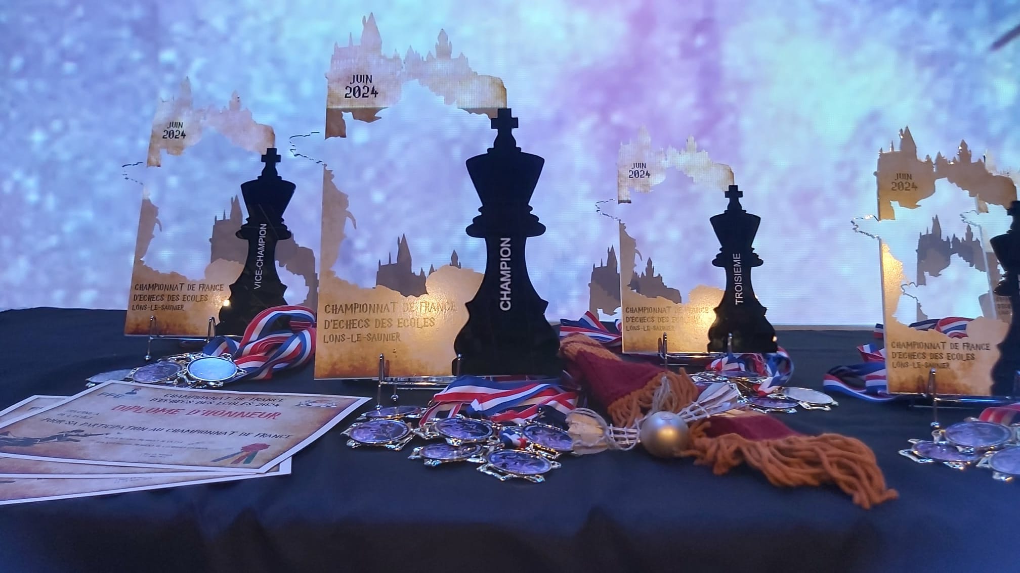 Nous remercions l'Échiquier Lédonien, ses bénévoles, son président Olivier Minaud, et Emily Minaud, membre du comité directeur et présidente du CDJE du Jura, pour l'organisation remarquable de ce championnat. Le club dispose d'un grand savoir-faire, et avait déjà organisé les finales des écoles en 2015, 2019 et 2023 dans ce lycée agricole, et a une fois encore offert un accueil de grande qualité.