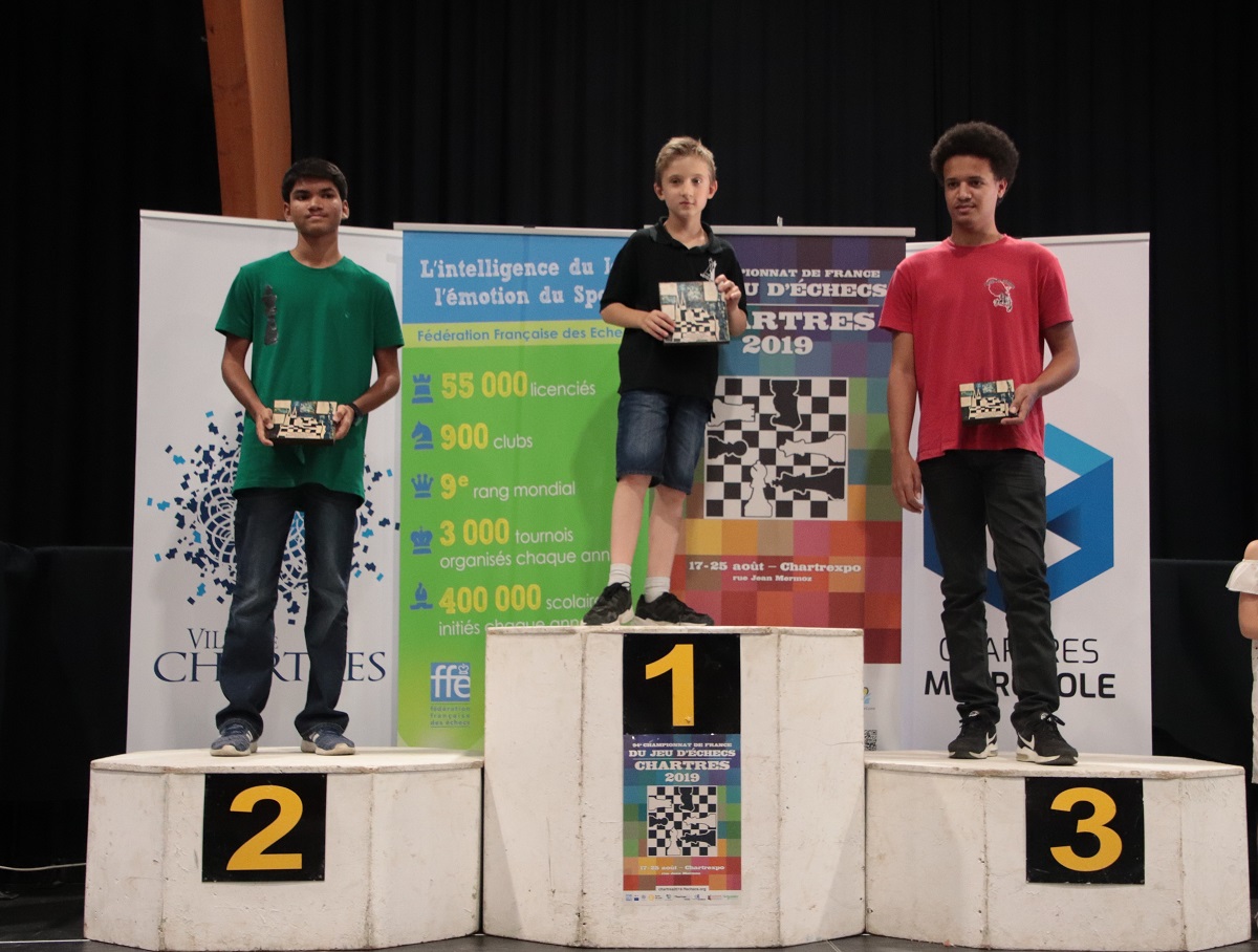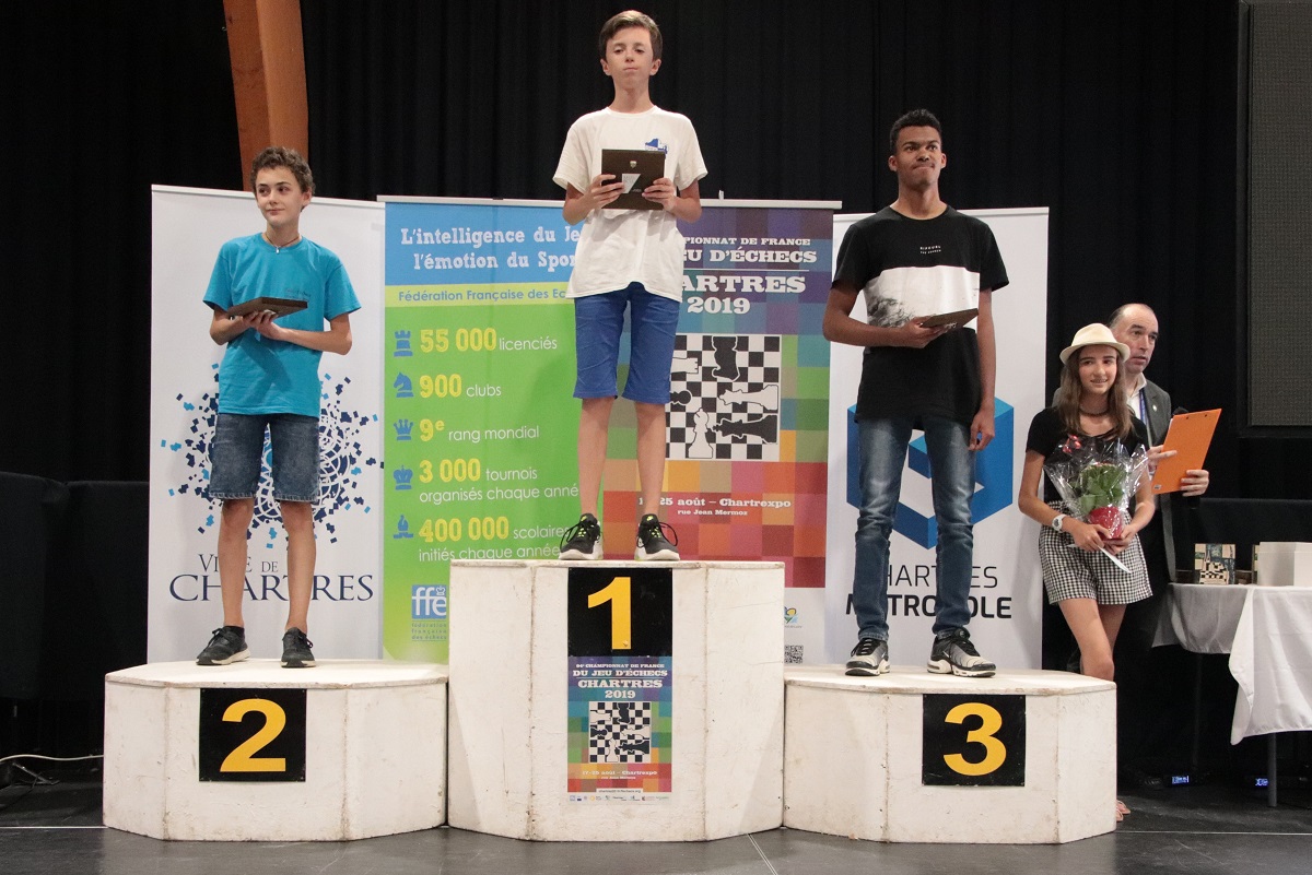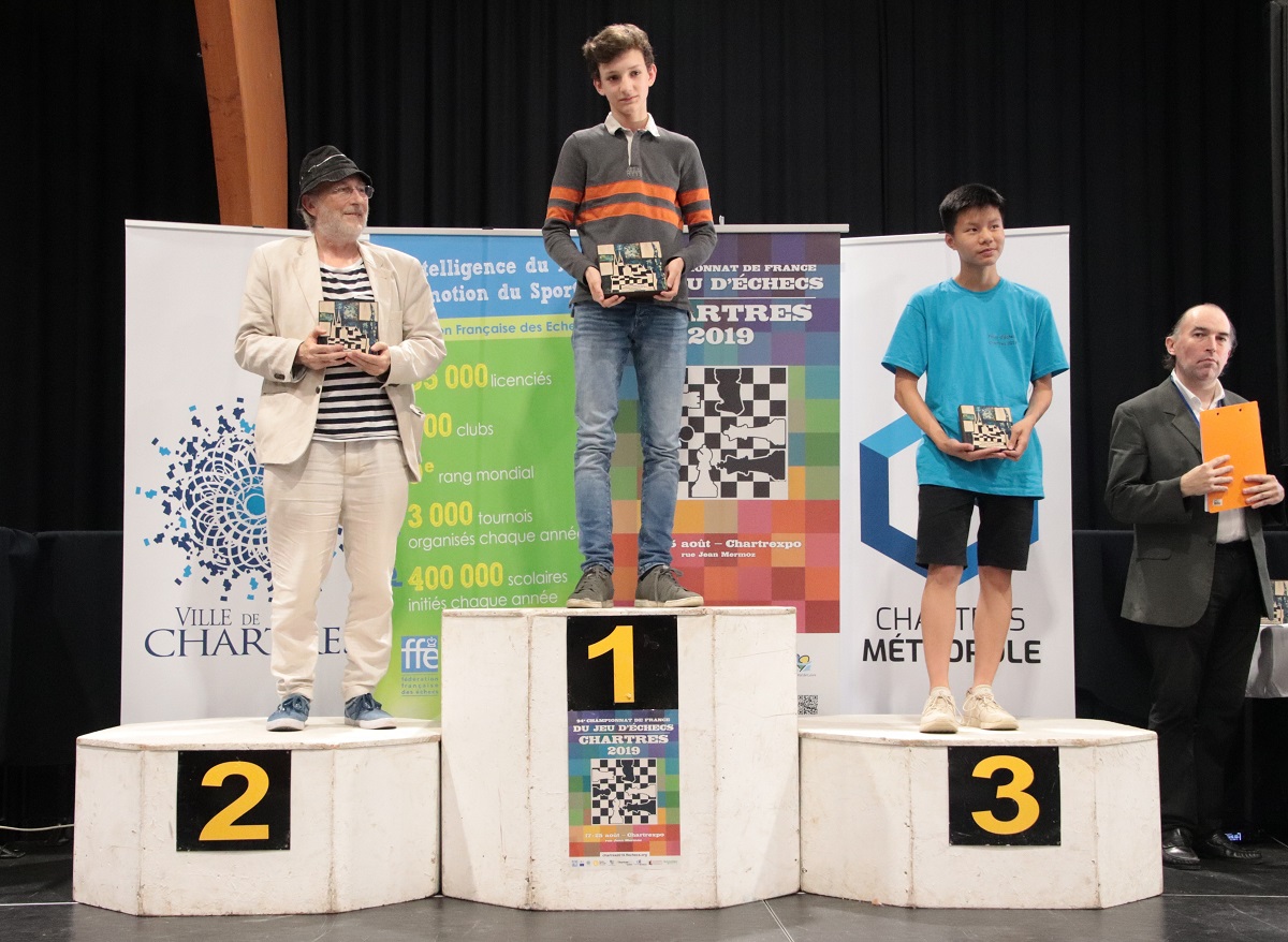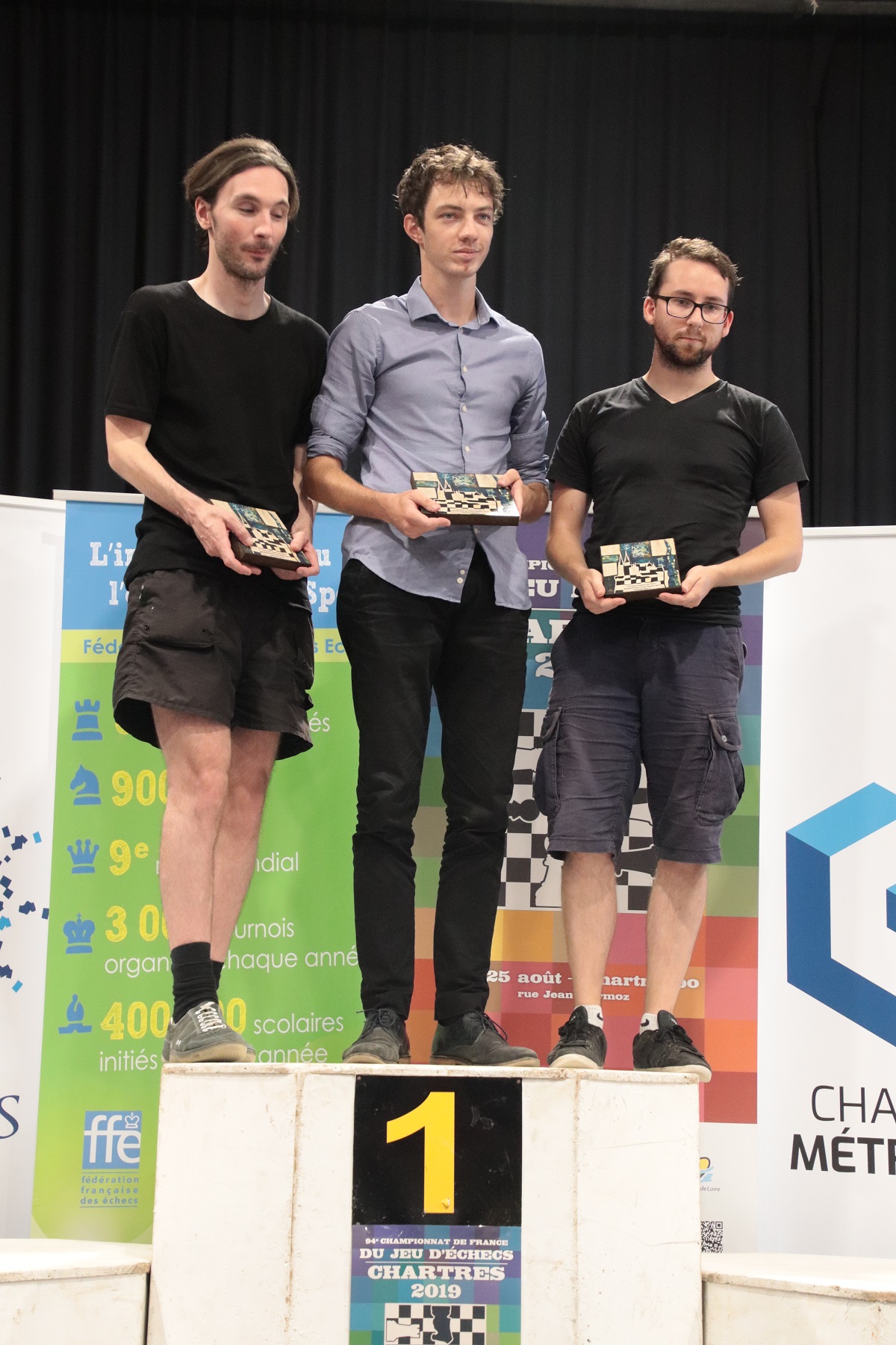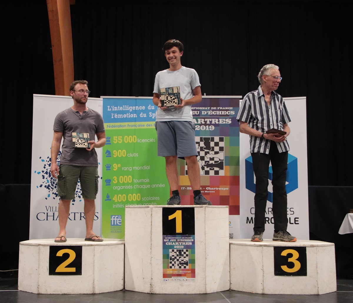 Le championnat de France d'échecs Chartres 2019 est terminé et nous souhaitons remercier tous les partenaires de l'événement, les joueurs qui ont répondu présent, tous les bénévoles, le club C'Chartres Échecs, la ville de Chartres et ses services municipaux, l'équipe de Chartres.live à la réalisation, Kévin Bordi, Manuel Apicella et Namig Guliyev pour les commentaires et les arbitres qui jouent un rôle essentiel dans le bon déroulement de cette compétition. Un grand merci pour ce championnat inoubliable ! Voici les photos des podiums.