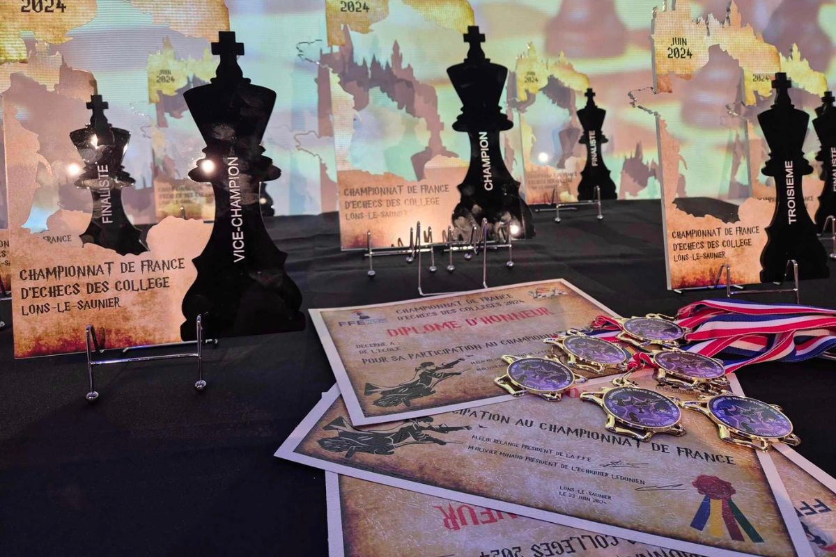 La FFE remercie l'Echiquier Lédonien, ses bénévoles et son président Olivier Minaud, pour l'organisation remarquable de ce championnat. Le club avait organisé les finales des écoles en 2015, 2019 et 2023 dans ce lycée agricole, et a une fois encore offert un accueil de grande qualité.