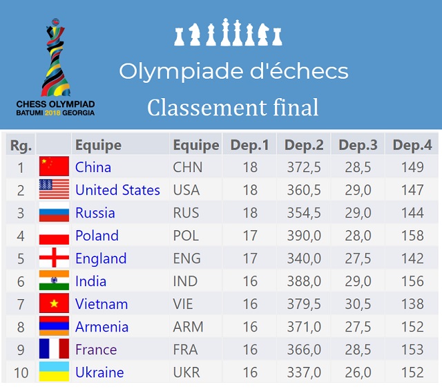 Olympiade 2018 à Batoumi (Géorgie)