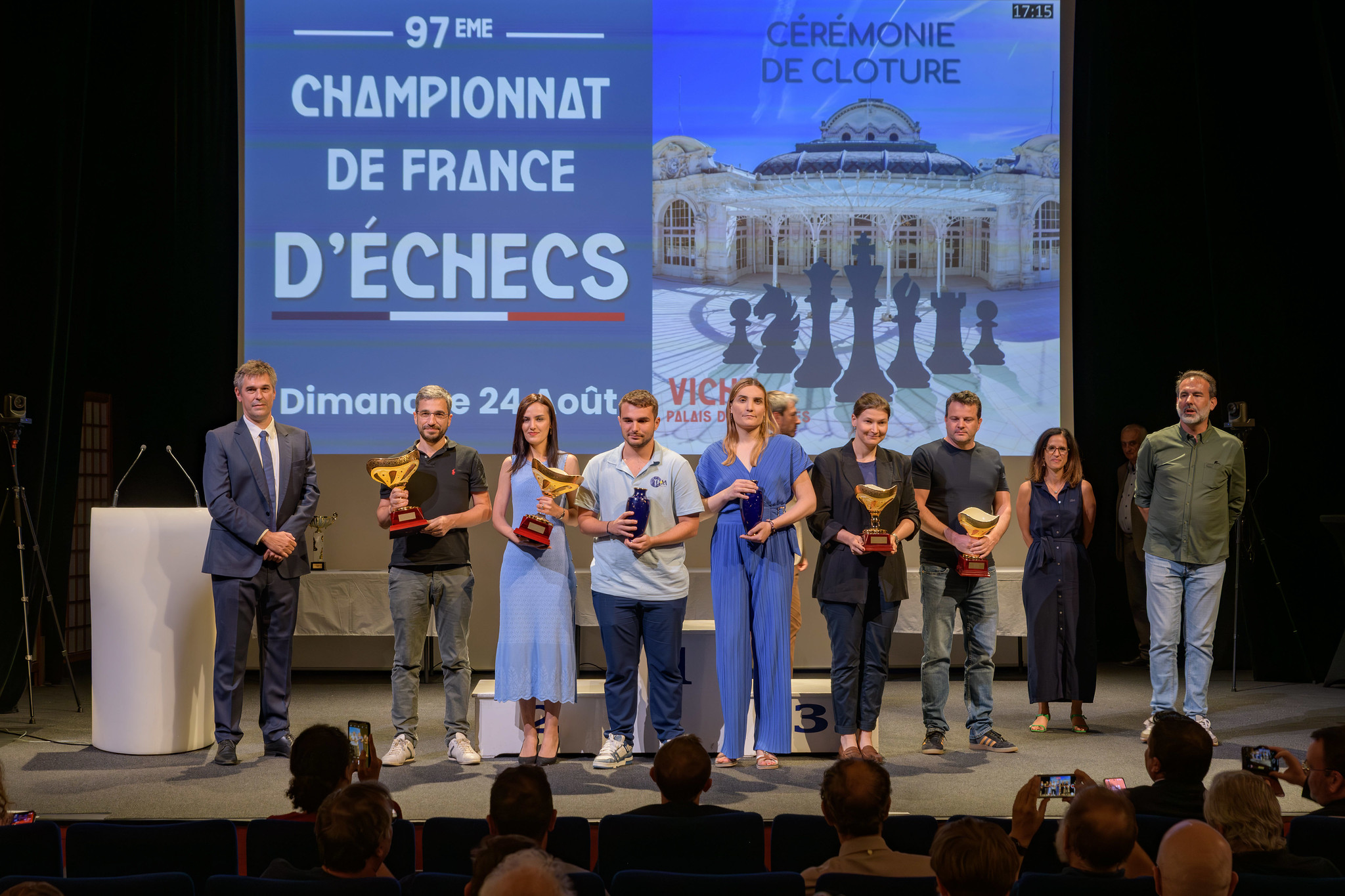 Le Championnat de France toutes catégories aura lieu du 7 au 16 août 2026 pour les Nationaux, et du 8 au 16 août pour les opens. Après le succès de l'an passé, marqué par le record de participation avec 1145 joueuses et joueurs, le Palais des Congrès de Vichy accueillera à nouveau cette prestigieuse compétition. L'édition 2025 a en effet été saluée pour le confort de jeu, l'accessibilité et le cadre unique en bord d'Allier. Quels que soient votre âge et votre niveau, vous pourrez participer, en présence des meilleurs grands maîtres français, et dans cette ville thermale aux nombreux attraits touristiques !