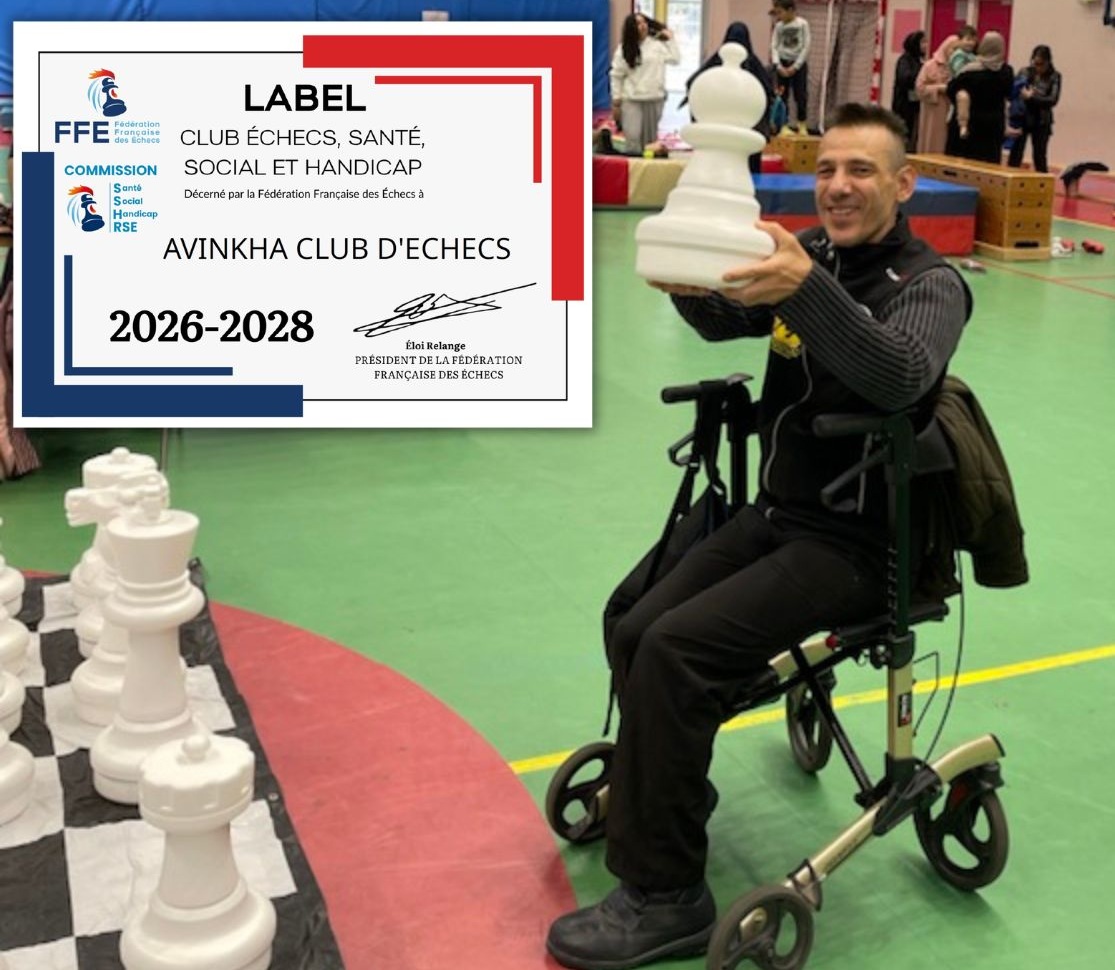 En novembre 2025, la Commission Santé, Social, Handicap et RSE de la FFE a lancé un nouveau label pour valoriser les actions des clubs qui s'engagent dans une pratique des Échecs visant l'amélioration de la santé, de la vie sociale et de la gestion du Handicap. Par leurs actions, ils participent à la dynamique faisant de notre sport un formidable outil pour traiter les enjeux de société liés au bien-être, à l'inclusion et au lien social. Pour Marie-Pierre Cottineau de l'AEPA, "Demander le label SSH était une évidence. Cette initiative constitue un facteur essentiel d'intégration des personnes en situation de handicap dans la société !"