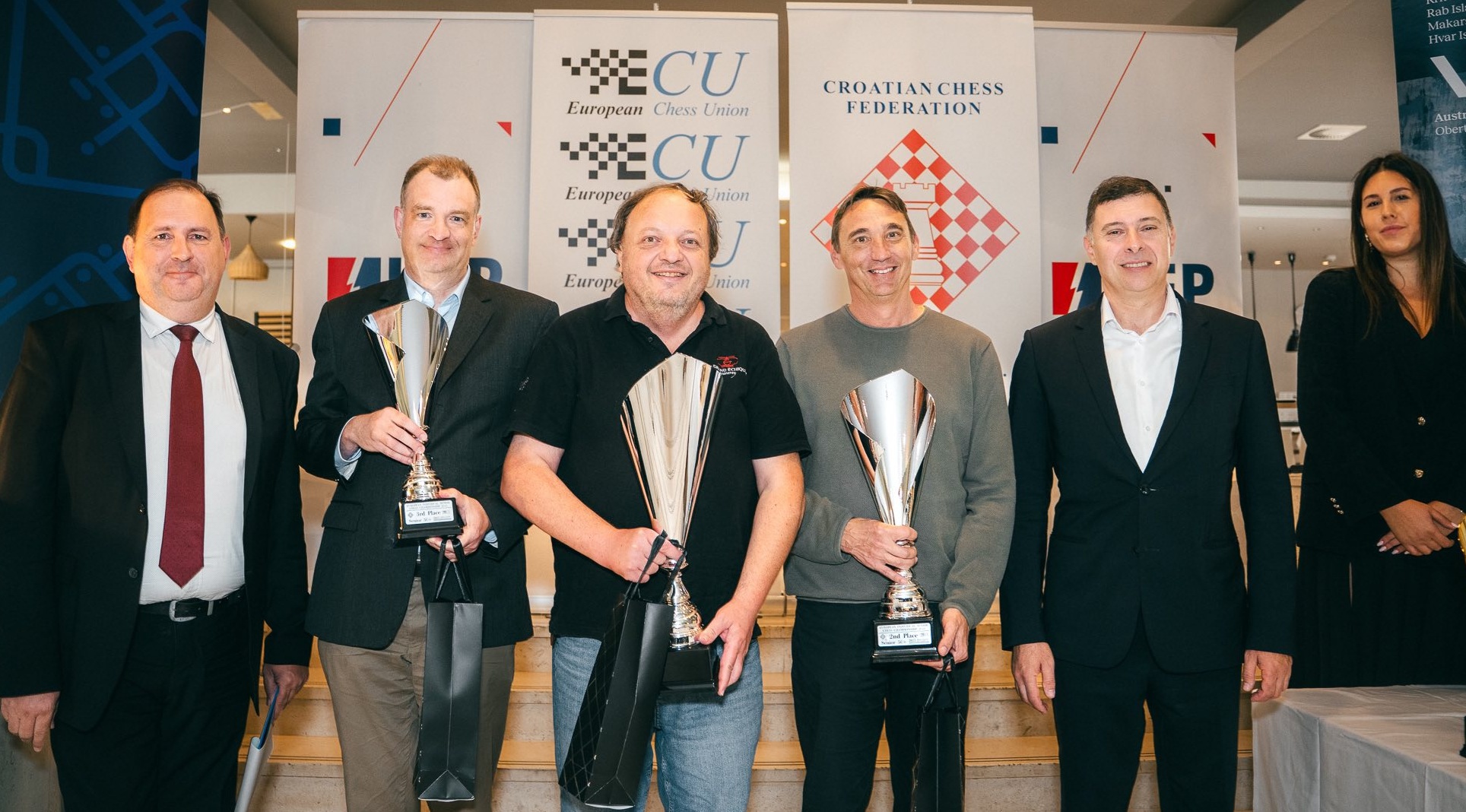 Les Championnats d'Europe des vétérans et Seniors Plus se sont déroulés du 27 septembre au 5 octobre à Rabac (Croatie), et le Français Jean-Marc Degraeve remporte en solitaire le titre européen avec 7 points sur 9. Le joueur d'Asnières - Le Grand Échiquier a rapidement pris les commandes du tournoi avec 4,5 points sur 5. Il a ensuite annulé lors des rondes 6, 7 et 8, permettant à trois joueurs de revenir à sa hauteur. Mais Jean-Marc Degraeve a été décisif à la dernière ronde, en battant l'Italien Fabrizio Bellia. Il termine invaincu, réalise une performance à 2520 et remporte son premier titre européen dans la catégorie 50+. La FFE adresse ses chaleureuses félicitations à Jean-Marc Degraeve !