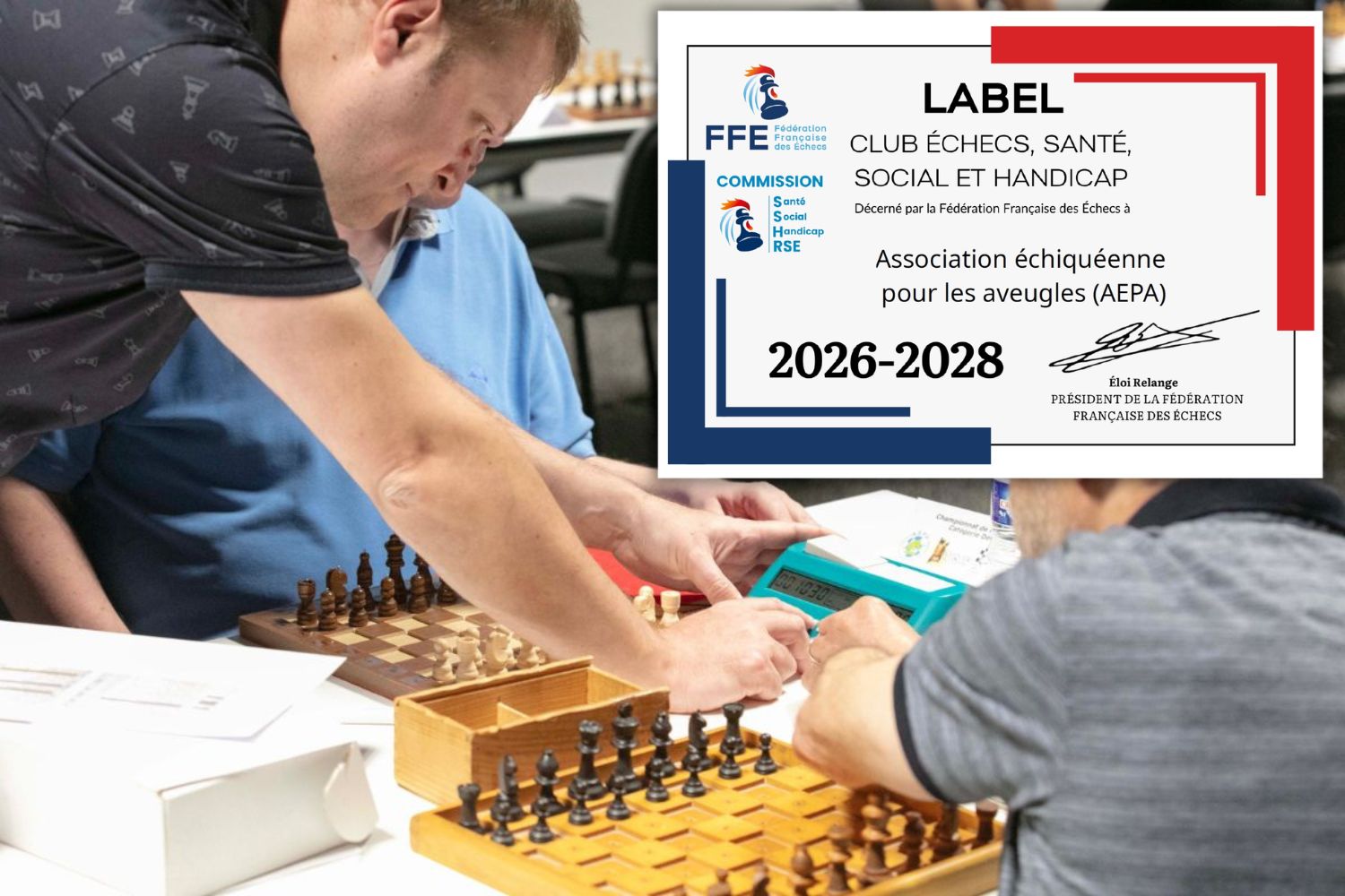 En novembre 2025, la Commission Santé, Social, Handicap et RSE de la FFE a lancé un nouveau label pour valoriser les actions des clubs qui s'engagent dans une pratique des Échecs visant l'amélioration de la santé, de la vie sociale et de la gestion du Handicap. Par leurs actions, ils participent à la dynamique faisant de notre sport un formidable outil pour traiter les enjeux de société liés au bien-être, à l'inclusion et au lien social. Pour Marie-Pierre Cottineau de l'AEPA, "Demander le label SSH était une évidence. Cette initiative constitue un facteur essentiel d'intégration des personnes en situation de handicap dans la société !"
