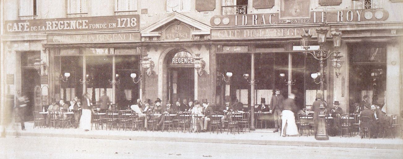 Créé à la fin du XVIIe siècle, le Café de la Régence était en effet une adresse prisée par les joueurs d'Échecs. Vers 1730 – 1740, une « école française » du jeu d'échecs commence à prendre forme, dont le premier chef de file est François-André Philidor (1726-1795), installé au Café de la Régence et qui révolutionne le jeu d'échecs avec son livre L'Analyse des Échecs.
