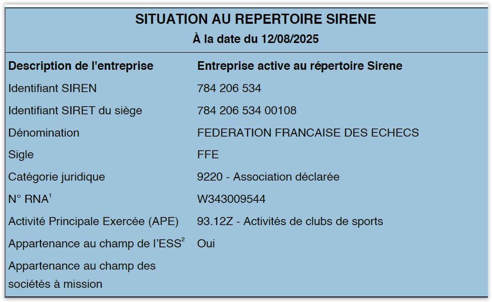 Pour les clubs ayant égaré ses différents numéros d'immatriculation, vous pouvez les retrouver sur : https://avis-situation-sirene.insee.fr/