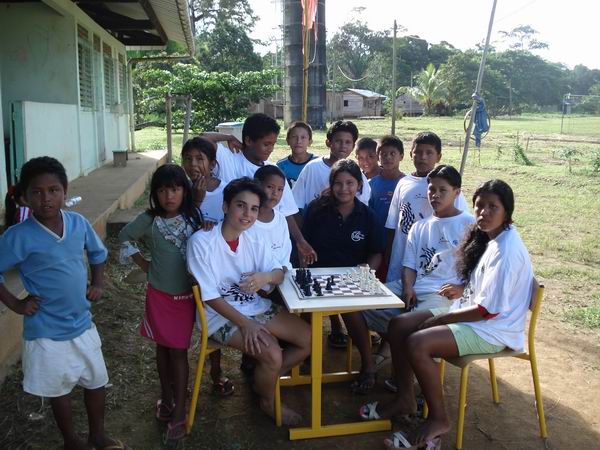 Les Trois-Palétuviers est un petit village peuplé d'une centaine d'Amérindiens, en plein coeur de la forêt guyanaise, situé sur les bords du fleuvre Oyapock, à une heure de pirogue de la première route. Pas de magasin, pas de téléphone, pas d'électricité et uniquement de l'eau de pluie. Mais des échecs pour la trentaine d'enfants du village grâce à l'enthousiasme d'un instituteur passionné, Daniel Baur, aujourd'hui vice-président de la toute jeune ligue de Guyane et du club des Cavaliers des Trois-Palétuviers. Un club qui a pris pour marraine Mathilde Congiu, la championne de France cadette. Grâce au soutien de la BNP Nancy, Mathilde était déjà allée sur place en février dernier, et elle vient d'y retourner.