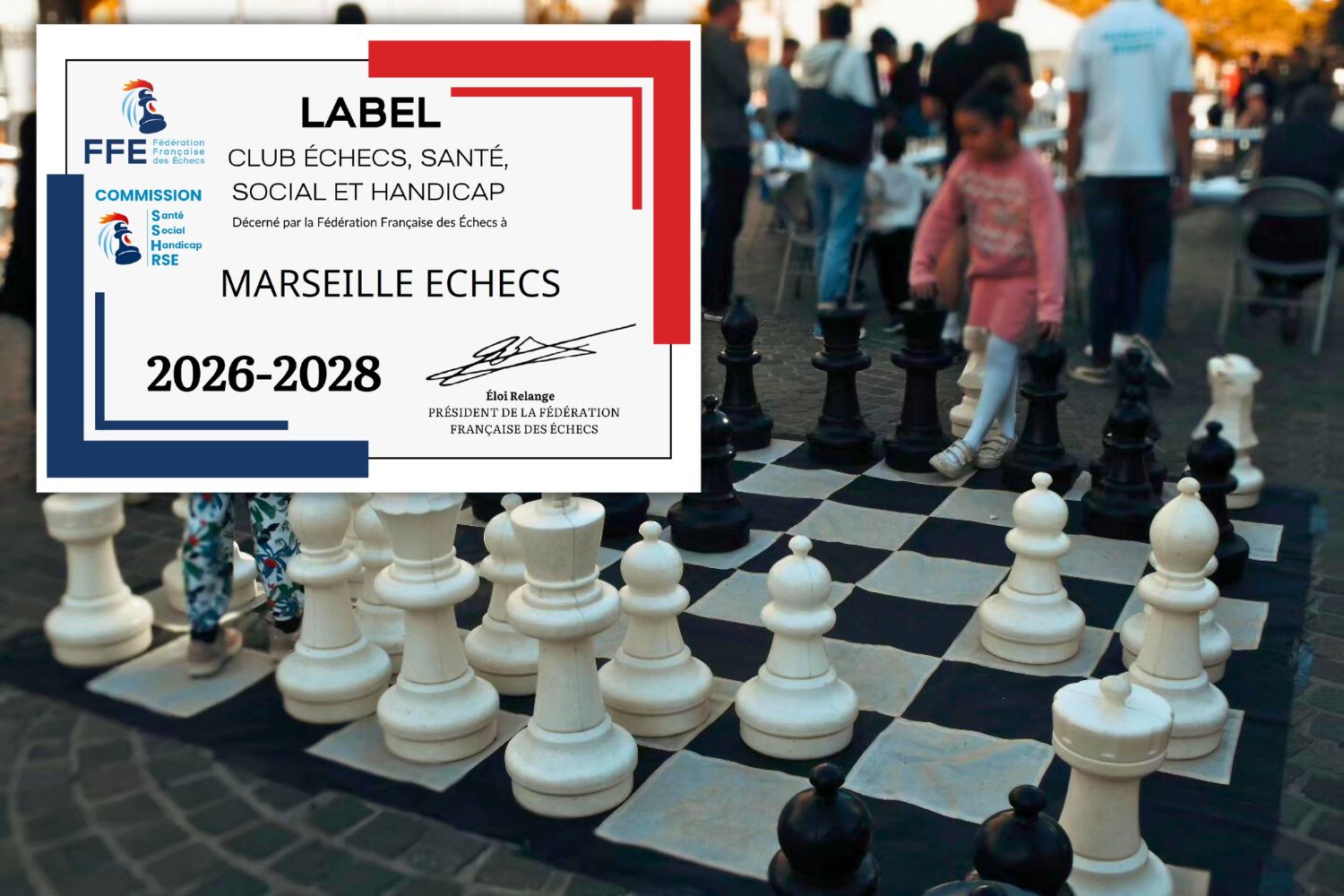 En novembre 2025, la Commission Santé, Social, Handicap et RSE de la FFE a lancé un nouveau label pour valoriser les actions des clubs qui s'engagent dans une pratique des Échecs visant l'amélioration de la santé, de la vie sociale et de la gestion du Handicap. Par leurs actions, ils participent à la dynamique faisant de notre sport un formidable outil pour traiter les enjeux de société liés au bien-être, à l'inclusion et au lien social. Pour Marie-Pierre Cottineau de l'AEPA, "Demander le label SSH était une évidence. Cette initiative constitue un facteur essentiel d'intégration des personnes en situation de handicap dans la société !"