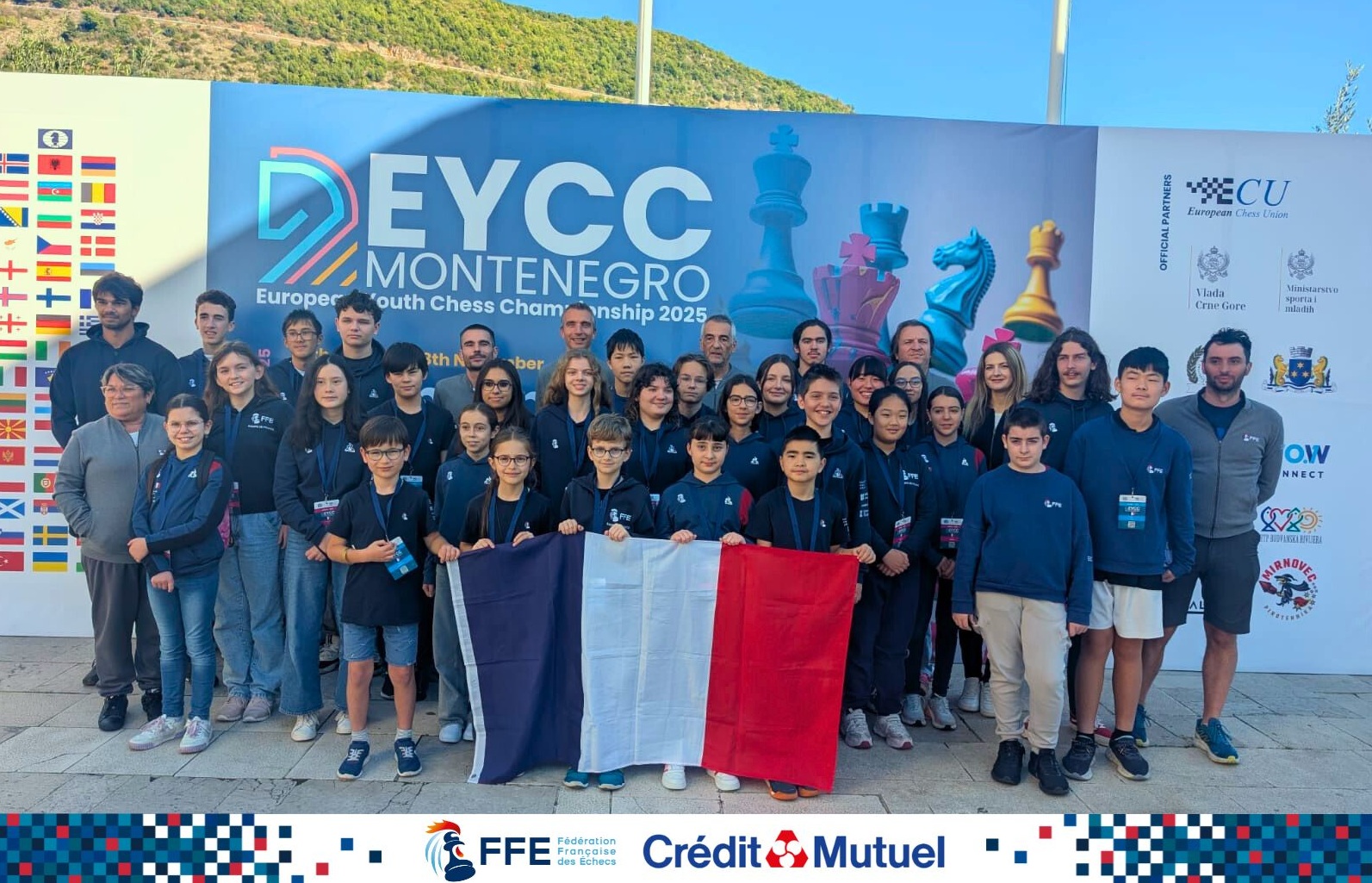 La FFE remercie le Crédit Mutuel, partenaire de la FFE et de ses Équipes de France jeunes, et le staff technique qui a joué un rôle très important lors du Championnat. Les jeunes étaient entraînés et préparés par Christine Flear, cheffe de la délégation, Romuald De Labaca, Axel Delorme, Yovann Gatineau, Sophie Milliet, Olivier Renet, Jean-Noël Riff et Quentin Loiseau.
