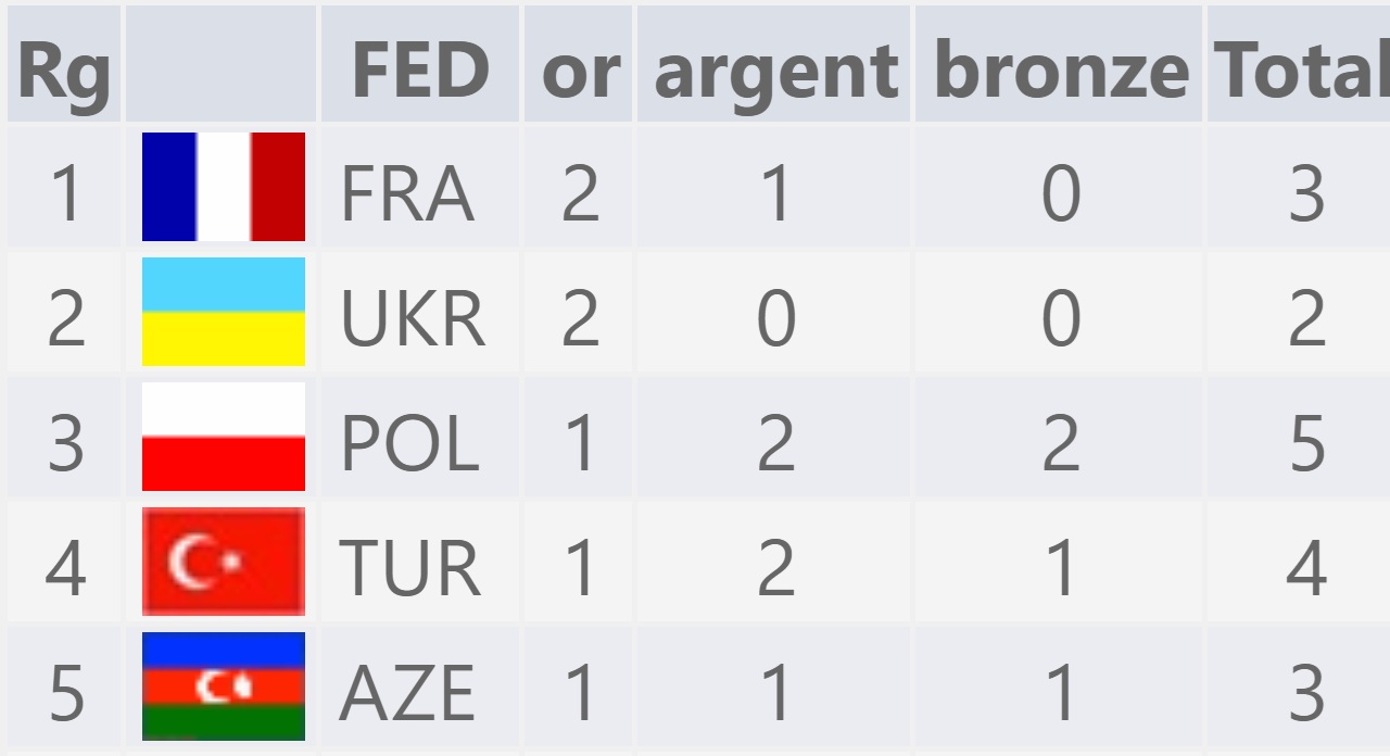 La délégation française repart donc avec trois médailles, mais aussi plusieurs places d'honneur : Marc Llari 5e en U12, Camille Billod-Laillet 6e en U10F, Émilie Negre 6e en U18F. Le Plan de performance a pour objectif de remporter des médailles lors des grands rendez-vous internationaux, et de donner aux jeunes les moyens de libérer pleinement leur potentiel, et ces excellents résultats confirment leur talent ! La FFE félicite les jeunes tricolores pour leurs résultats, ainsi que pour leur excellent état d'esprit pendant toute la durée du championnat. Ils permettent à la France d'être à la première place du classement des nations dans ce Championnat.
