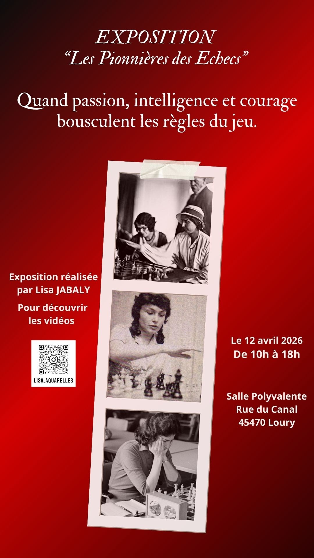 Le 12 avril, à la salle polyvalente, rue du Canal à Loury (Loiret), l'exposition « Pionnières des échecs » met à l'honneur les femmes qui ont façonné l'histoire du jeu d'Échecs.