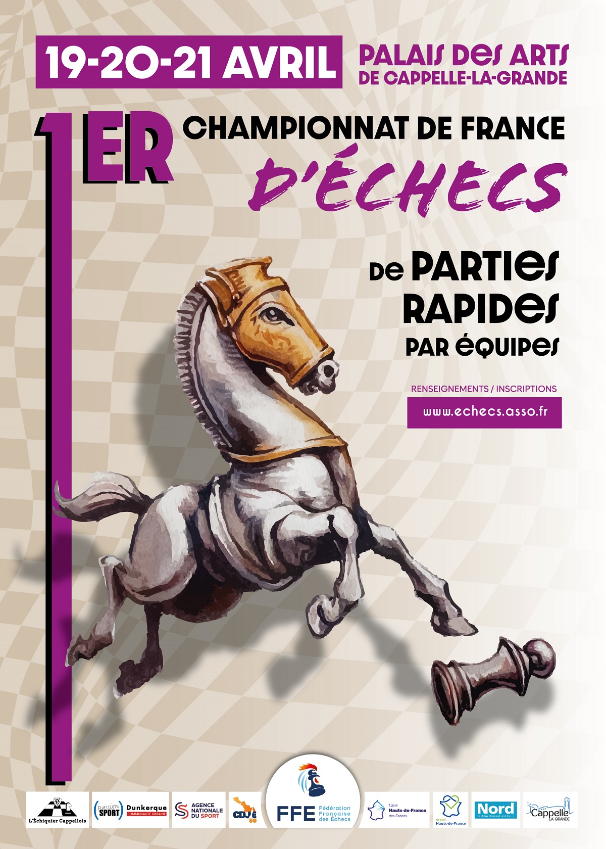 La première édition du Championnat de France des clubs de parties rapides aura lieu du 19 au 21 avril au Palais des Arts de Cappelle-la-Grande, qui accueille le célèbre open bien connu des joueurs d'Échecs.