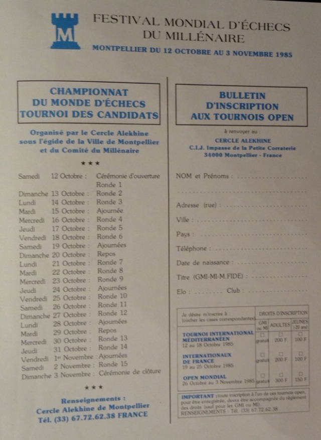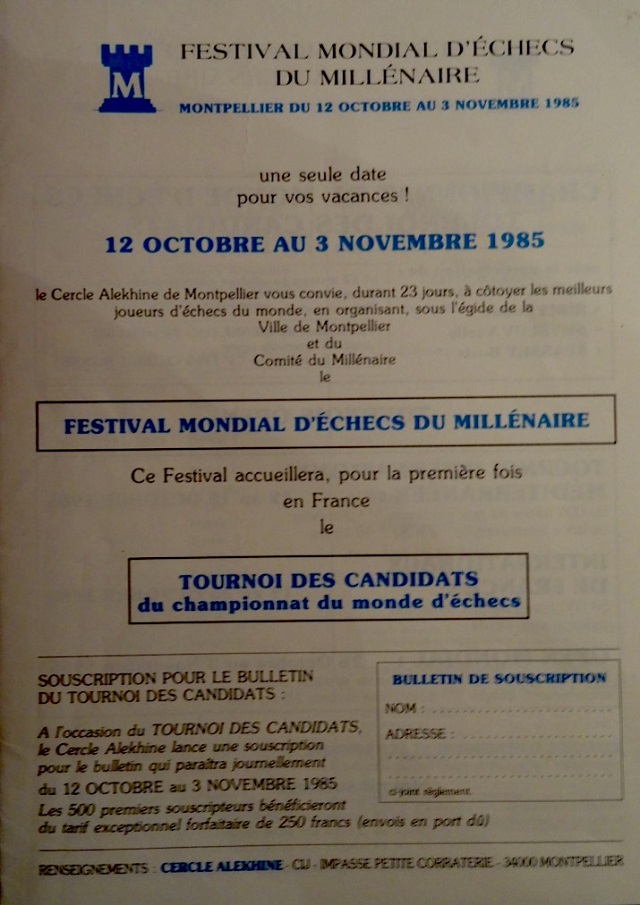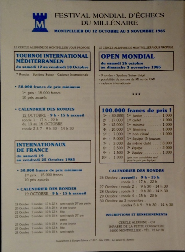 Montpellier 1985 : festival mondial d'échecs du millénaire