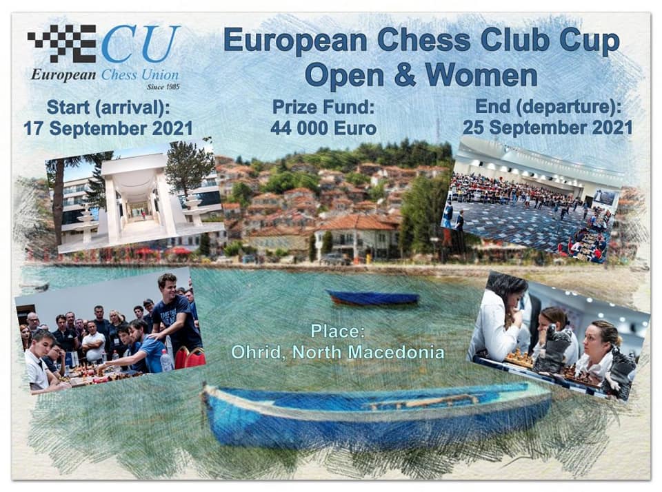 La Coupe d'Europe des clubs d'échecs se déroule du 17 au 24 septembre 2021 à Struga, en Macédoine du Nord. La compétition se dispute en 7 rondes, à la cadence de 90 minutes pour 40 coups, puis 30 minutes supplémentaires pour terminer la partie, le tout avec un ajout de 30 secondes par coup. Les parties commencent tous les jours à 15h.
