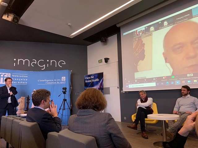La Conférence Internationale "Chess for mental health" organisée le 9 mars 2022 par la FFE en partenariat avec la FIDE a rencontré un beau succès ! Plus de 100 participants du monde entier, joueurs d'échecs, professionnels de la santé et institutionnels étaient réunis à l'Institut Imagine à Paris pour présenter les bénéfices du jeu d'échecs pour la santé mentale.