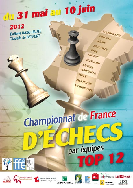 Le célèbre Lion de Belfort veillera aux destinées des équipes du Top 12, du 31 mai au 10 juin. Le club organisateur, Belfort-Echecs, soutenu par la municipalité, n'a pas lésiné sur les moyens pour recevoir la plus haute division du championnat de France des clubs. Les rencontres auront lieu au coeur même de la Citadelle, dans un lieu prestigieux de la cité franc-comtoise, la batterie Haute HAXO. Les parties débuteront chaque jour à 14h30, sauf la dernière ronde (dimanche 10 juin) qui commencera à 10h30.